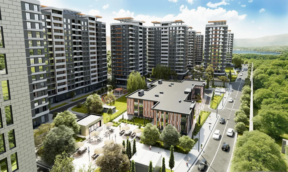 İdeal infrastrukturu və əlverişli yerləşmə mövqeyi ilə fərqlənən kompleks hər biri 14 mərtəbəli 12 binadan ibarətdir.