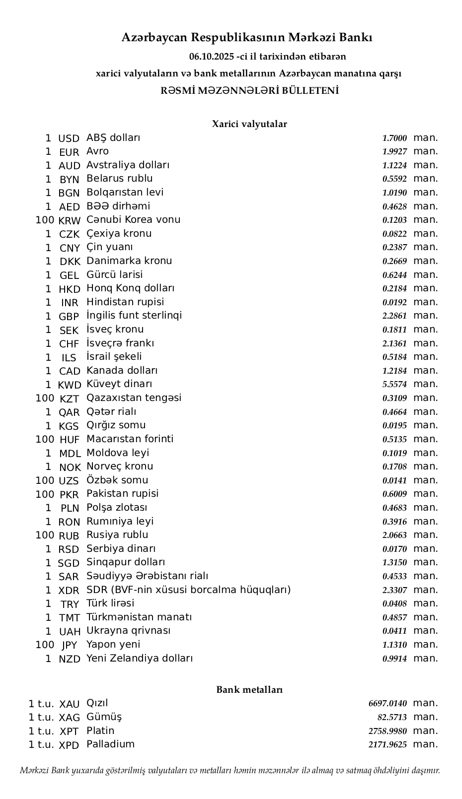 Dolların sabah üçün rəsmi məzənnəsi müəyyən olunub