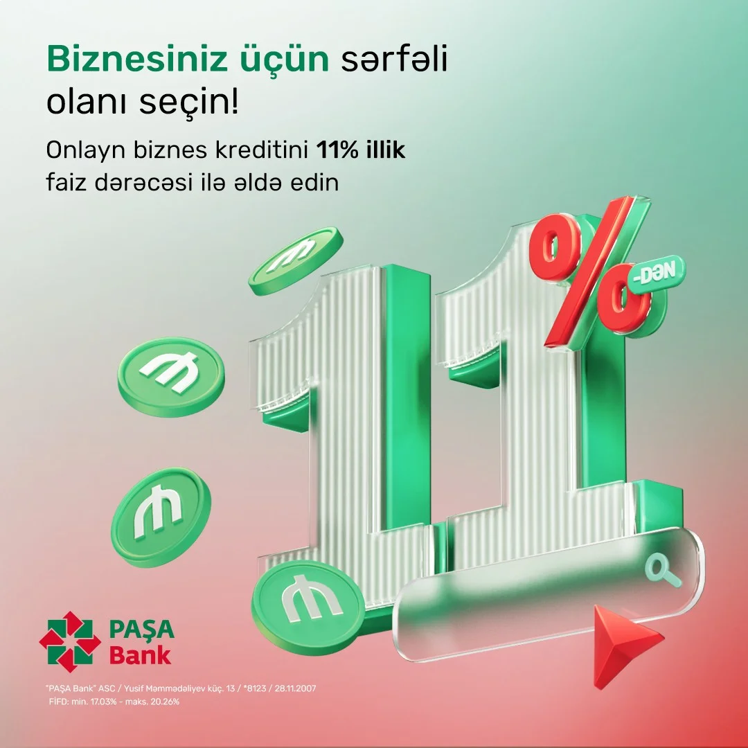 “PAŞA Bank”dan sahibkarlar üçün yeni endirimli biznes kredit kampaniyası!