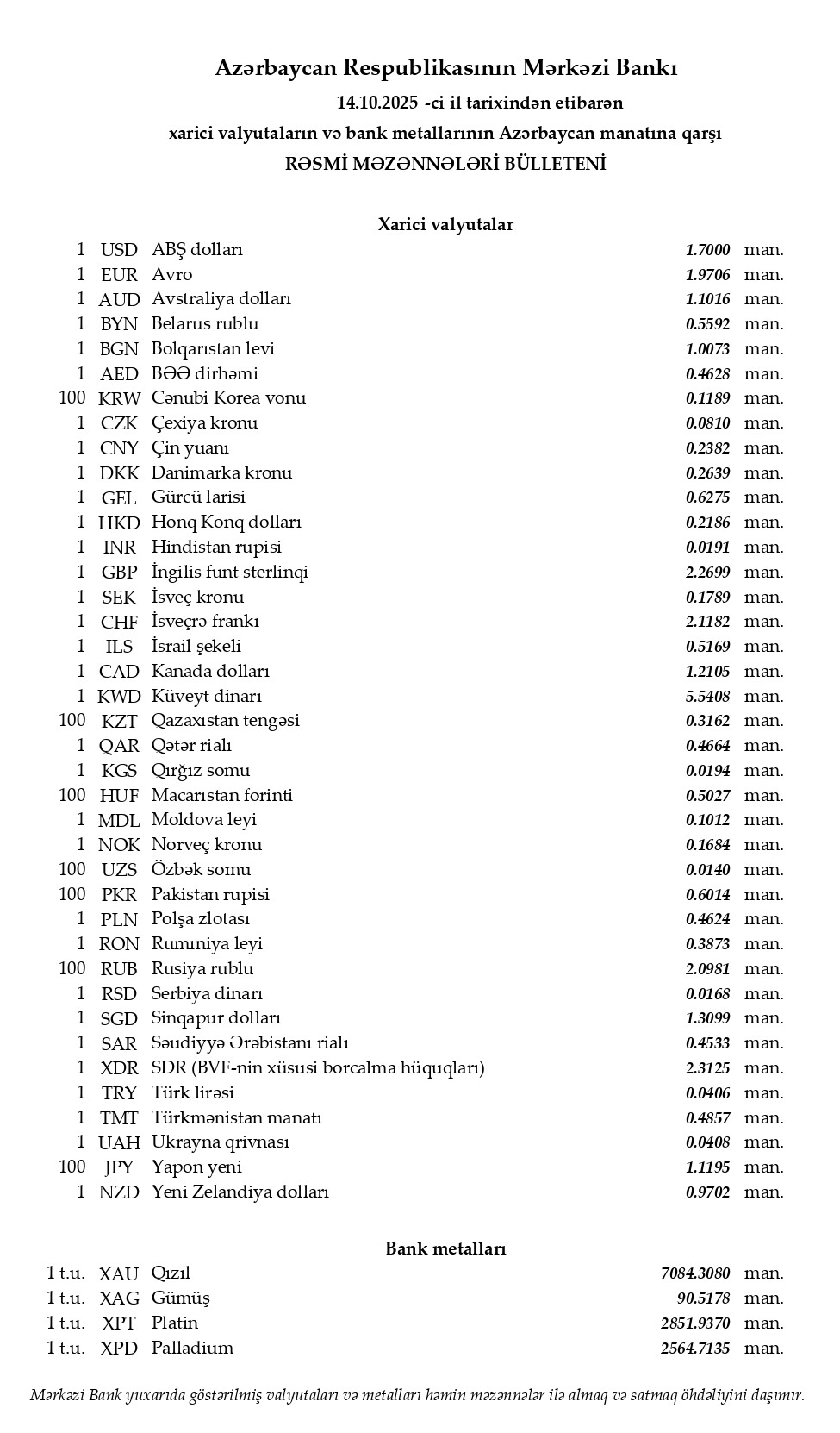 Dolların sabah üçün rəsmi məzənnəsi müəyyən olunub