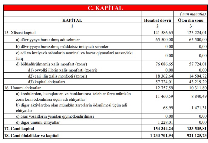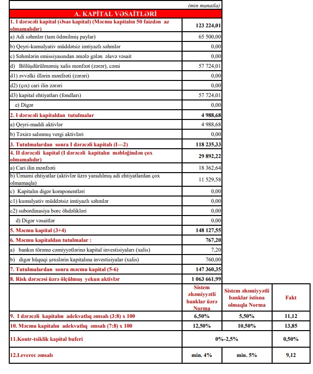 Nəticədə, bankın xalis mənfəəti 11 milyon 294 min manatdan 18 milyon 363 min manata yüksəlib — 7 milyon 69 min manat və ya 62,6% artım olub. Bu, bank üçün güclü rentabellik göstəricilərindən biridir.