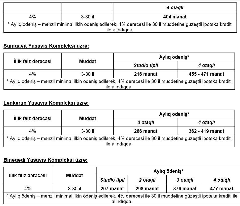4 otaqlı mənzillərin qiyməti – 84 150 manatdan başlayır.