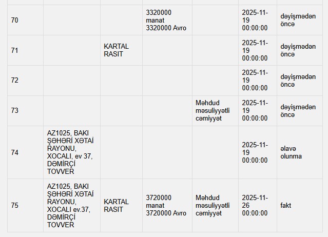 Məlumata görə, şirkət nizamnamə kapitalını 400 min manat artıraraq 3 milyon 720 min manata çatdırıb.