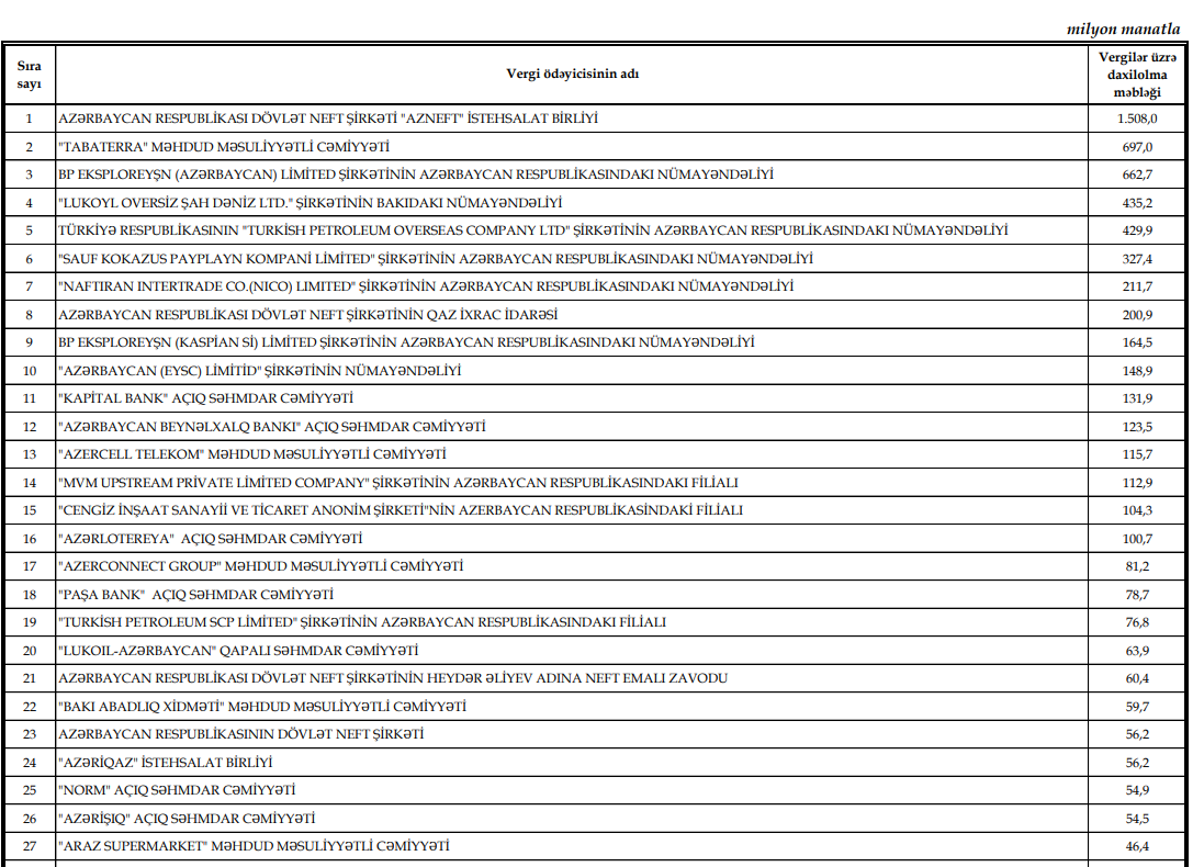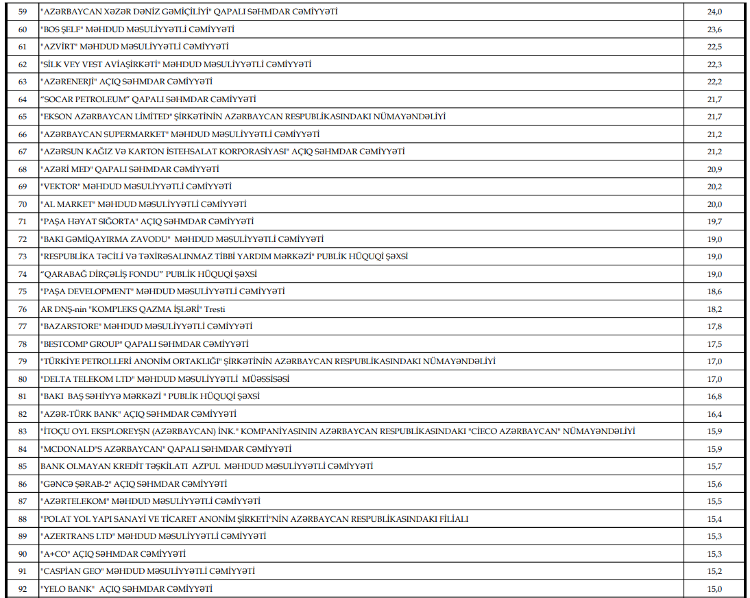 Azərbaycanda ən çox vergi ödəyən 100 şirkətin adı açıqlandı - SİYAHI