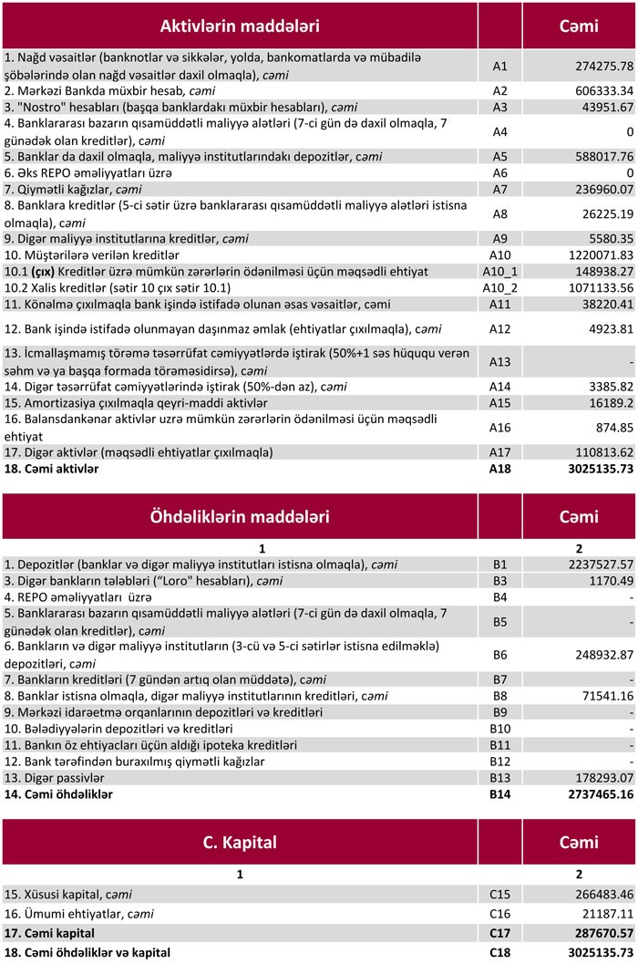 "Kapital Bank" ASC-nin məcmu kapitalı 249 milyon 586.05 min manatdır.