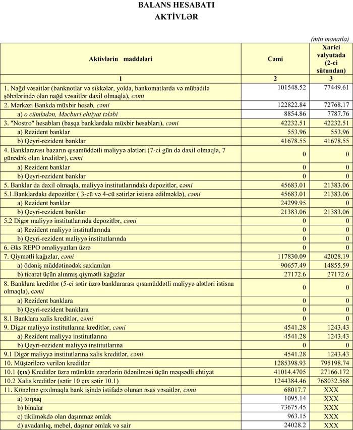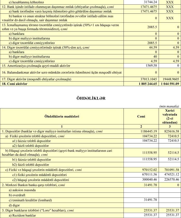 30 Sentyabr 2017-ci il tarixində “XalqBank” 1 milyard 805 milyon 244 min manat cəmi aktivlərə, 1 milyard 551 min 831 min manat cəmi öhdəliklərə və 253 milyon 413 min manat cəmi balans kapitalına malik olub.