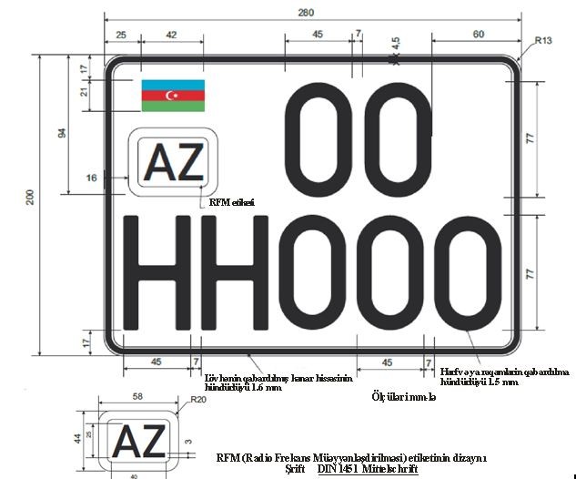 Standartlaşdırma, Metrologiya və Patent üzrə Dövlət Komitəsi AZS 599-2015 “Nəqliyyat vasitələri və onların qoşqularının dövlət qeydiyyat nişanları. Tipləri və əsas ölçüləri. Texniki tələblər” dövlət standartının tələblərini açıqlayıb