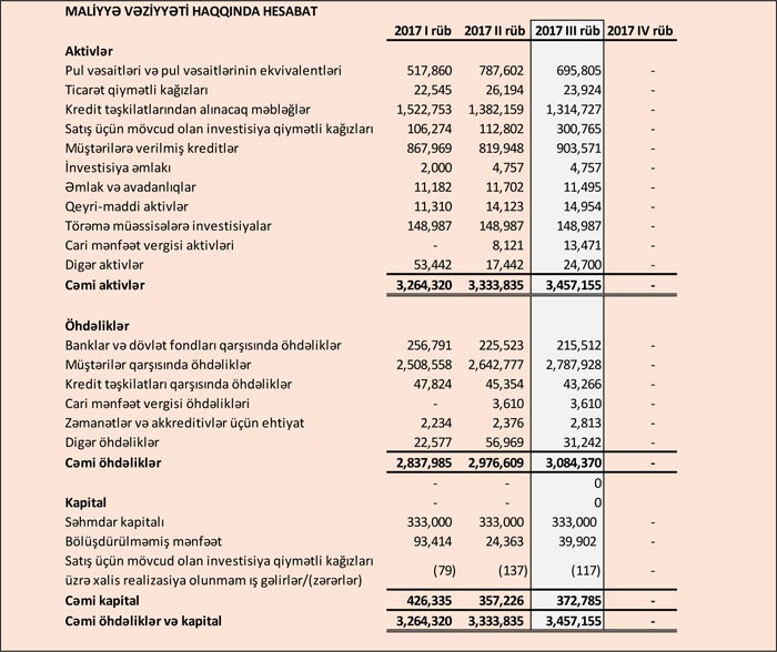 Müştərilərə verilən kreditlər ötən ilin sonundakı 870,2 milyon manatdan 903 milyon 571 milyon manata yüksəlib.