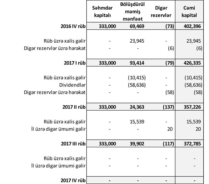 30 Sentyabr 2017-ci il tarixində PAŞA Bank 3 milyon 457 milyon 155 min manat cəmi aktivlərə, 3 milyard 84 milyon 370 min manat cəmi öhdəliklərə və 372 milyon 785 min manat cəmi balans kapitalına malik olub.