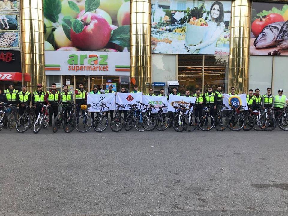 Qrupdan "Marja"ya daxilolmuş məlumata görə, veloyürüşdə "Veysəloğlu" MMC, "Ulduz" şokolad fabriki, "Araz" supermarketlər şəbəkəsi və "Oba" marketlər şəbəkəsinin əməkdaşları iştirak ediblər.