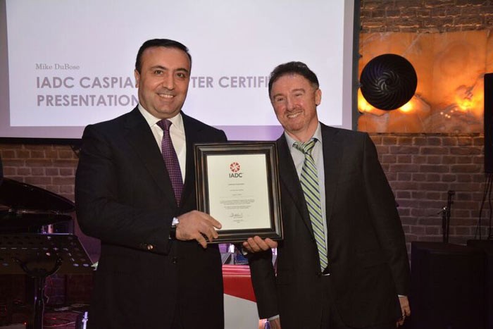 Cənab Mike DuBose İADC-nin Xəzər hövzəsi üzrə Komitəsinin yaradılması istiqamətində SOCAR-AQŞ-nin iki ildən çox bir müddətdə yerli və regional tərəfdaşlarla apardığı məhsuldar müzakirələrin əhəmiyyətini vurğulayaraq yeni təsis olunan bölgə nümayəndəliyinin üzvlük sertifikatını müəssisənin Baş direktoru R. İsayevə təqdim edib.