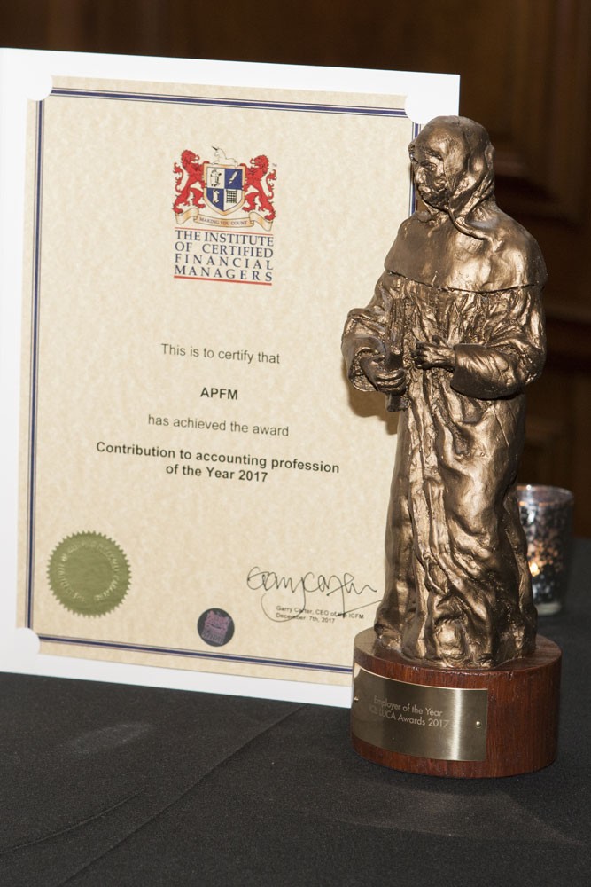 Mükafat 07 dekabr 2017-ci il tarixində Böyük Britaniyanın Sertifikatlı Maliyyə Menecerləri İnstitutunun rəhbəri cənab Garry Carter tərəfindən “8th LUCA AWARD 2017” Təntənəli Təqdimat Mərasimində təqdim olunub. Ənənəvi olaraq ICFM tərəfindən hər il dekabr ayında keçirilən bu tədbirdə dünyanın bir çox ölkələrinin qabaqcıl mühasib və maliyyə institutlarının, iri şirkətlərinin nümayəndələri, maliyyə, audit, mühasibatlıq sahəsində çalışaq peşəkar mütəxəssislər və diplomatik nümayəndələr iştirak edir. Qeyd edək ki, Şahzadə Maykl Kentski bu institutun rəhbəridir.