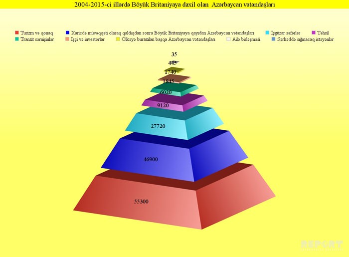 Məlumata görə, 2004-2016-cı illərdə Birləşmiş Krallığa 137650 Azərbaycan vətəndaşı daxil olub. Onlardan 55300 nəfəri ölkəyə turist və qonaq kimi gəlib. 46900 nəfər xarici ölkələrdə müvəqqəti olaraq qaldıqdan sonra Böyük Britaniyaya qayıdan Azərbaycan vətəndaşları olub. 27720 nəfərin ölkəyə səfəri işgüzar məqsədi daşıyıb.