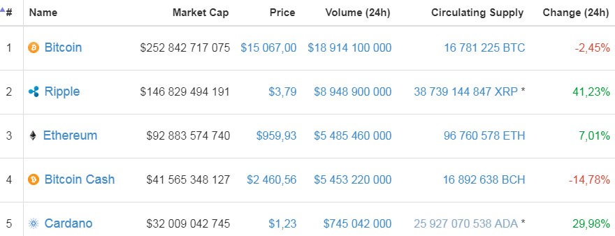 Ethereumla bərabər Ripple-ın da bahalaşması davam edir. Bitcoin bu dəqələrdə 15 min 067 dollardan, Ripple isə 3,79 dollardan ticarət olunur.