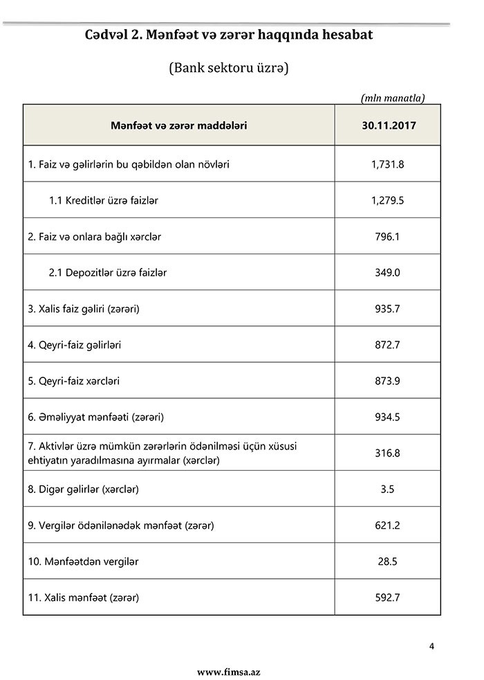 Noyabrın 1-nə bankların xalis mənfəəti 549,6 milyon manat təşkil etmişdi. Banklar noyabrda 43,1 milyon manat qazanıblar.