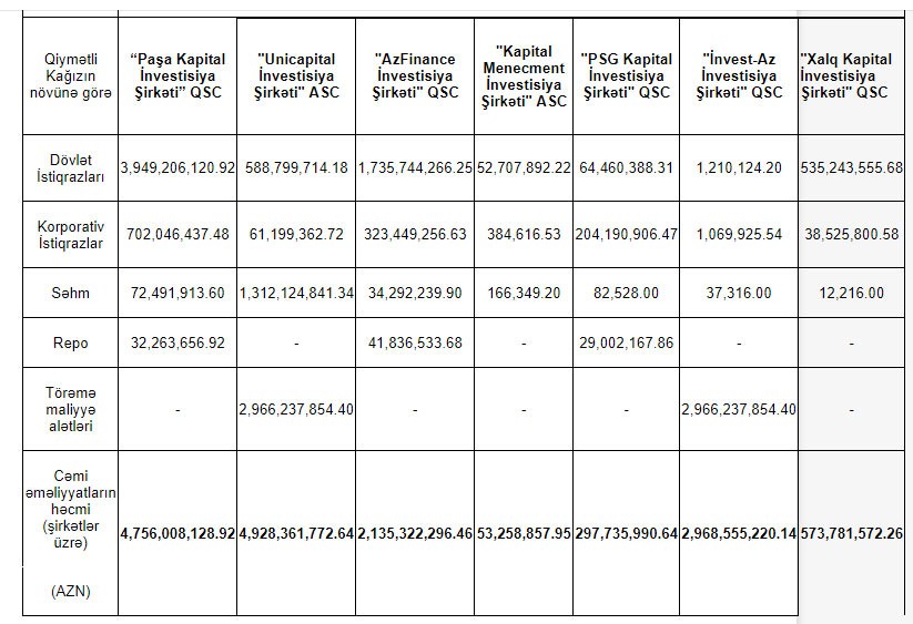 "Unicapital" 1-ci oldu - İNVESTİSİYA ŞİRKƏTLƏRİNİN DÖVRİYYƏLƏRİ