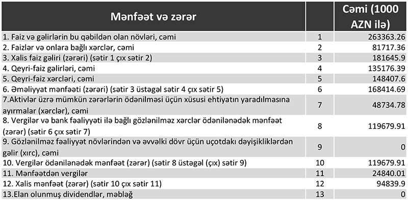 “Marja” Bankın maliyyə hesabatlarına istinadən xəbər verir ki, ötən il Bankın cəmi gəlirləri 398 milyon 539 min manat, o cümlədən faiz gəlirləri 263 milyon 363 min manat, qeyri-faiz gəlirləri 135 milyon 176 min manat təşkil edib.