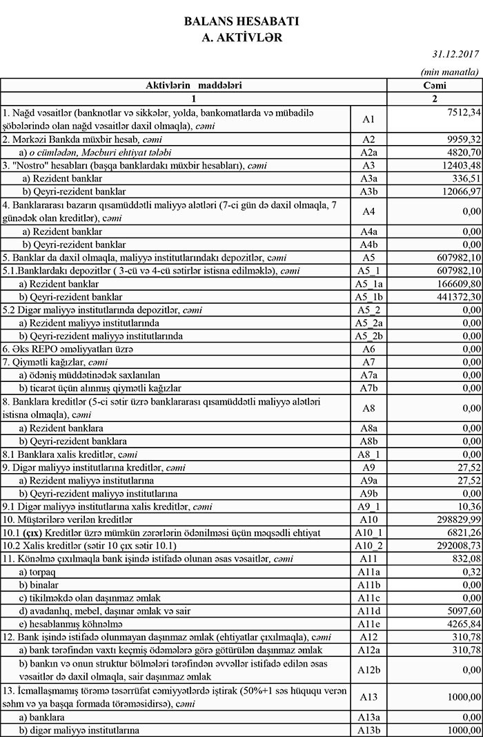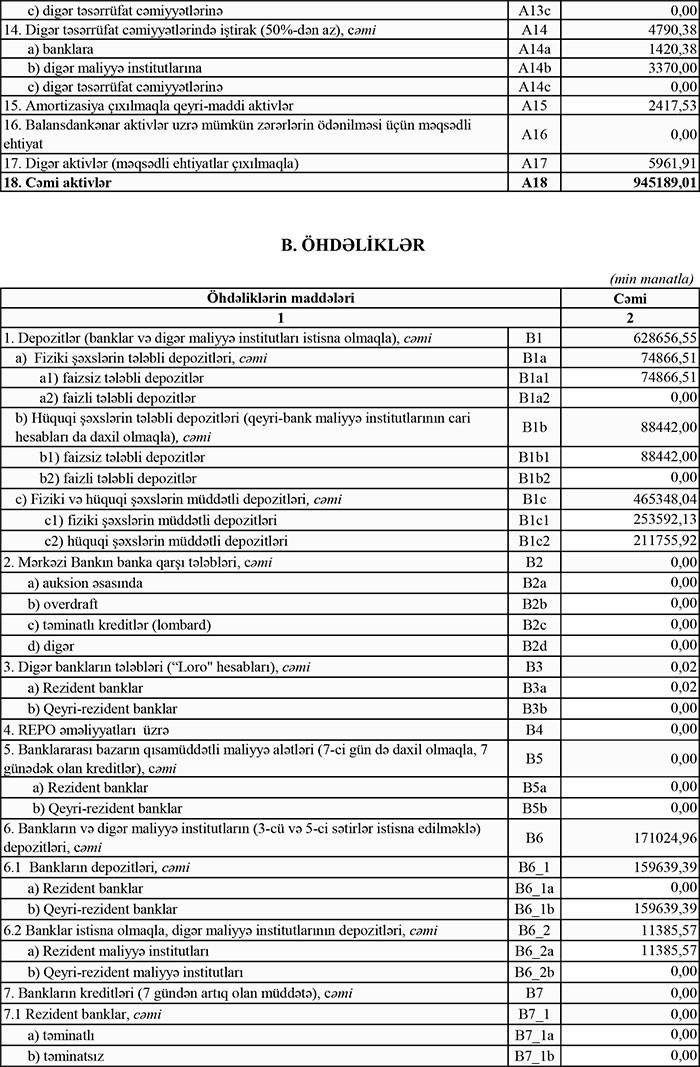 Bankın maliyyə göstəriciləri ilə daha ətraflı buradan tanış ola bilərsiniz.
