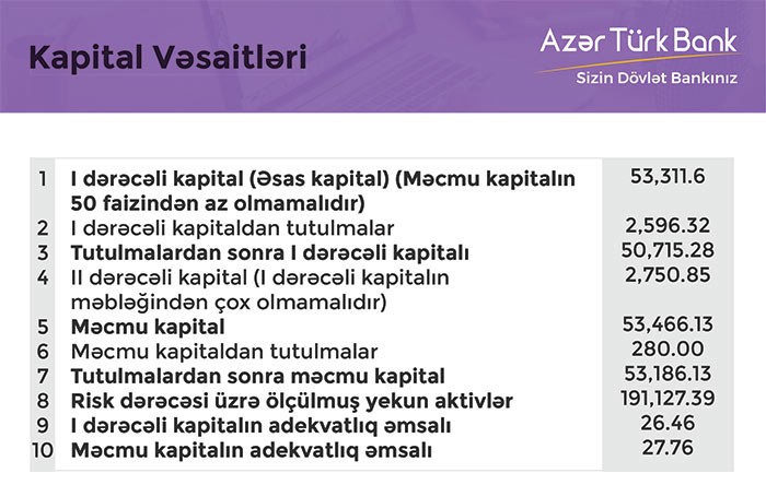 2017-ci ilin sonunda “AzərTürkBank” 53 milyon 466 min manat məcmu kapitala malik olub.