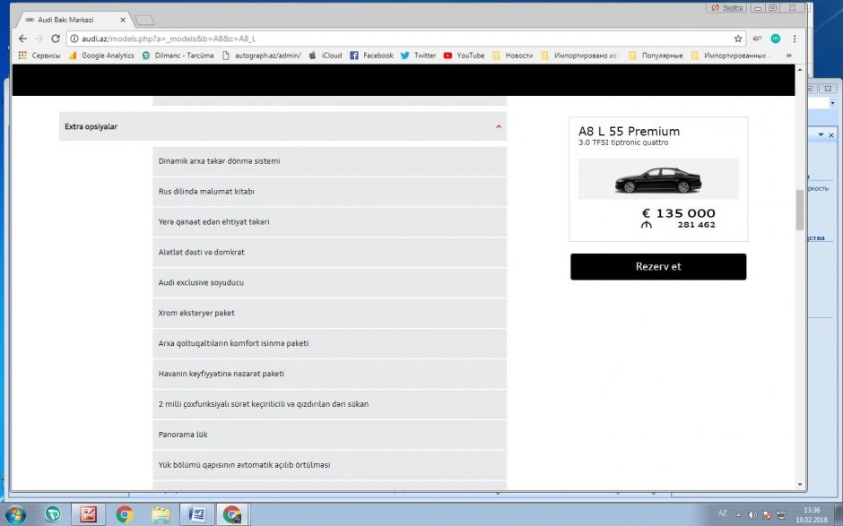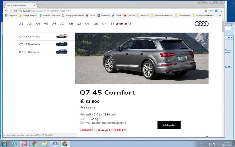 Lakin, saytın yenilikləri model seçimi ilə məhdudlaşmır. Burada arzuladığınız avtomobilin testinə yazıla bilər, yerli dilerlə əlaqə saxlayaraq suallarınıza cavab tapa bilərsiniz. Bunun üçün saytın aşağı hissəsindəki menyuya nəzər salmaq kifayətdir. Audi Bakı Mərkəzinin yeni sərgi-satış və servis mərkəzinin fəaliyyətə başlanmasından sonra “ikinci əl” bölümündə satışda ola işlənmiş avtomobillər barədə də məlumat ala bilərsiniz.