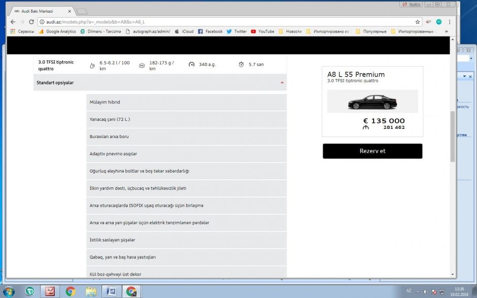 Burada modelin həm standart, həm də əlavə avadanlığı ilə tanış ola bilərsiniz. Texniki göstəricilər də öz yerində - mühərrikin gücü, sərfiyyatı və dinamik xüsusiyyətləri ilə də tanış ola biləcəksiniz. Elə bilməyin ki, bu yalnız Audi A8 modelinə şamil edilir. Əsla!