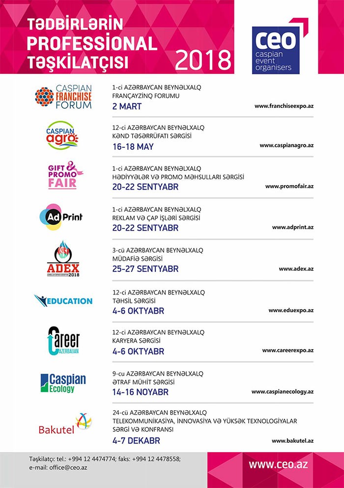 2018-ci ildə keçiriləcək sərgi və tədbirlər - CƏDVƏL