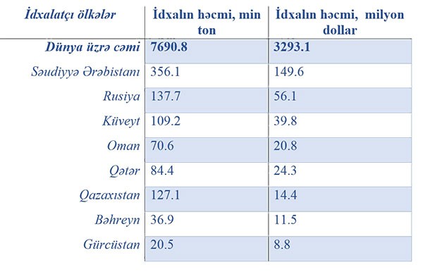 Ümumiyyətlə isə yanvar ayı ərzində meyvə-tərəvəz ixracı 35 milyon, plastmass və onlardan hazırlanan məmulatların ixracı 10 milyon, alüminium və ondan hazırlanan məmulatların ixracı 9 milyon, qara metallar və onlardan hazırlanan məmulatların ixracı 5 milyon, kimya sənayesi məhsullarının ixracı 3.6 milyon milyon ABŞ dolları olub.