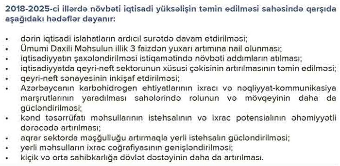 Namizədin sosial-iqtisadi səhədəki hədəfləri aşağıdakılardır.