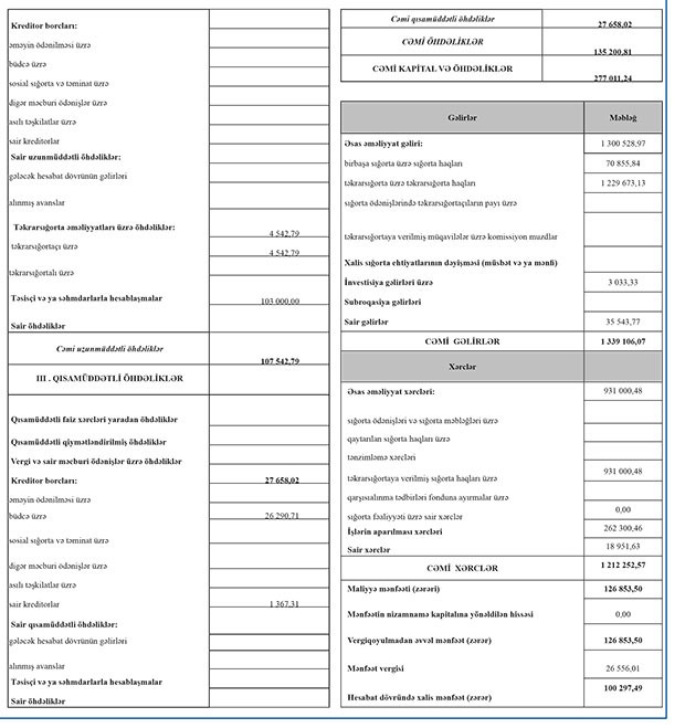 İllik müqayisədə təkrarsığorta üzrə təkrarsığorta haqları 2016-dakı 339 933 manatdan 1 229 673 manata yüskəlib. Təkrarsığortaya verilmiş sığorta haqları üzrə xərclər isə 222 775 manatdan 931 000 manata qalxıb.