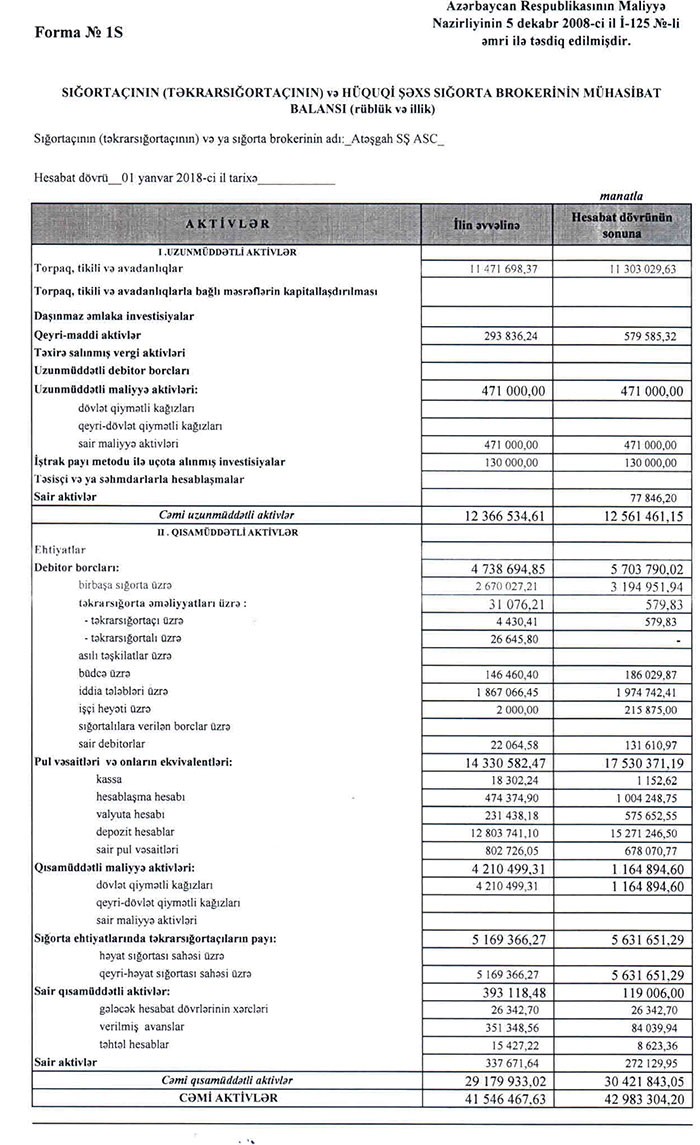 “Marja” Şirkətin mühasibat balansına istinadən xəbər verir ki, ötən il “Atəşgah Sığorta Şirkəti”nin cəmi gəlirləri 39 milyon 572 min manat, cəmi xərcləri isə 40 milyon 599 min manat təşkil edib.
