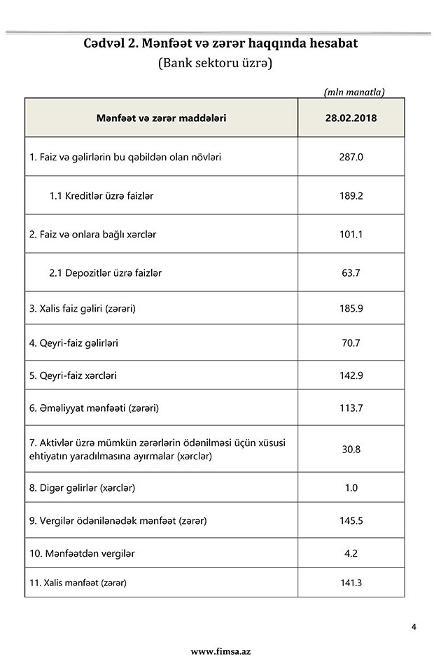 2018-ci il martın 1-nə bank sektorunun xalis mənfəəti 141,3 milyon manat təşkil edib.