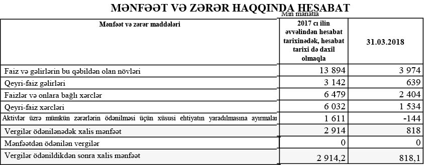 Beləliklə, "NBC Bank" illik müqayisədə gəlirlərini artırıb və mənfəətə çıxıb.