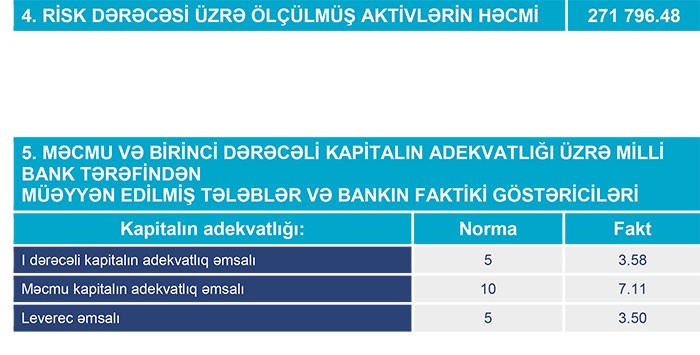Bank 2017-ci ilin sonunda 399 milyon 860 min manat cəmi aktivlərə, 363 milyon 272 min manat cəmi öhdəliklərə və 36 milyon 587 min manat cəmi balans kapitalına malik idi.
