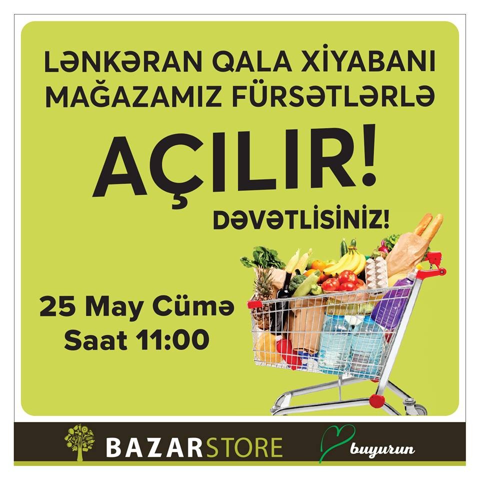 "Marja" şəbəkənin yaydığı məlumata istinadən xəbər verir ki, 25 May 2018-ci il tarixində, saat 11.00-da Lənkəran Qala xiyabanı ərazində "Bazarstore"un 3-cü filialı müştərilərini ixtiyarına veriləcək.