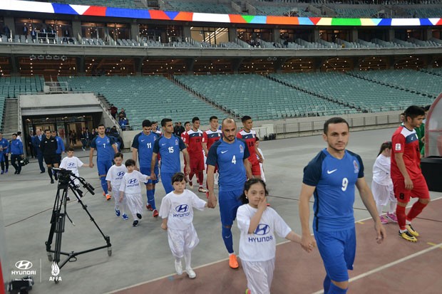 Mayın 29-da Bakı Olimpiya Stadionunda keçirilmiş Azərbaycan - Qırğızıstan dostluq görüşündə komandalar meydana daun sindromlu uşaqlarla birlikdə daxil olmuşdular.