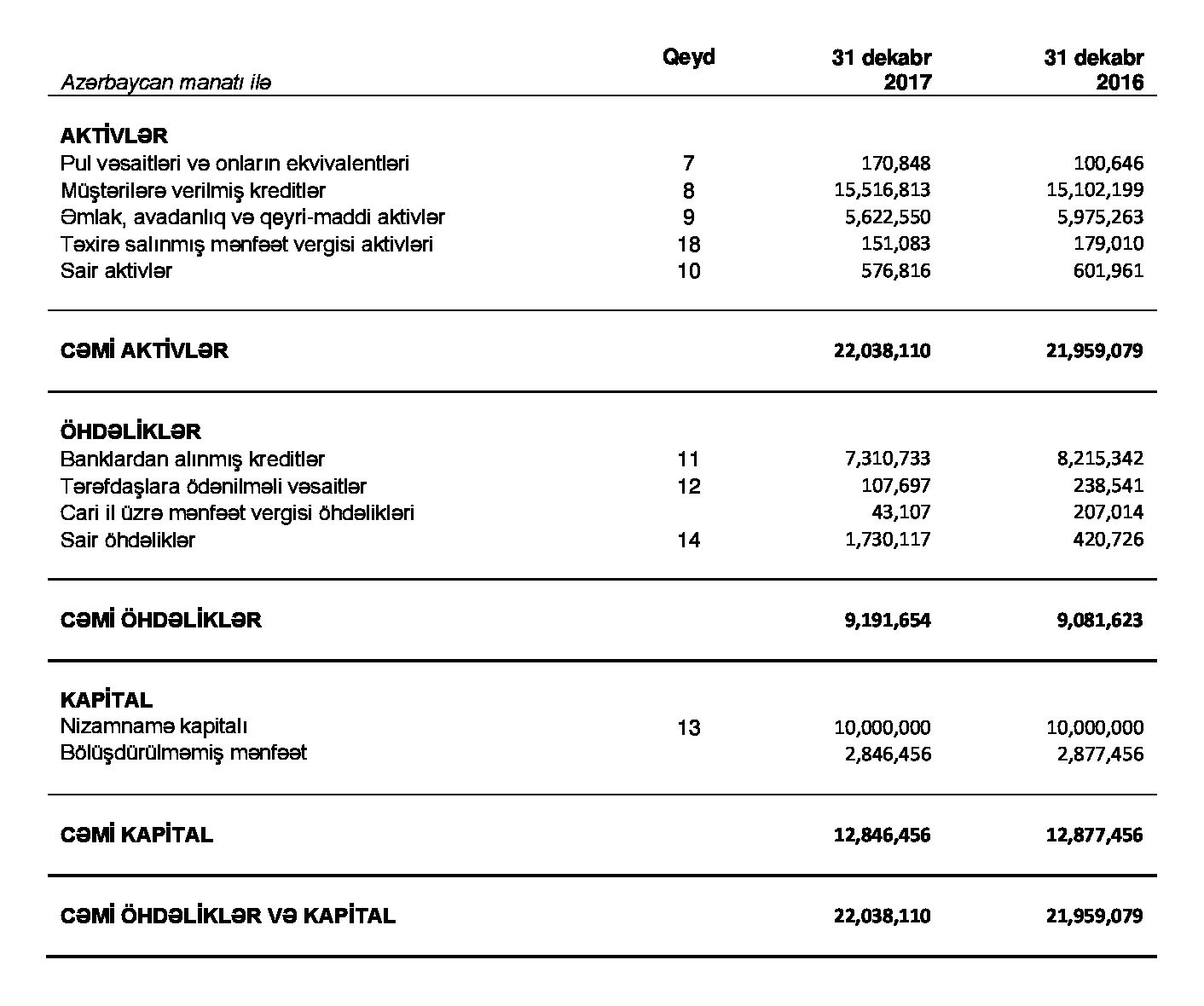 "Embafinans" 2017-ni mənfəətlə başa vurduğunu açıqladı