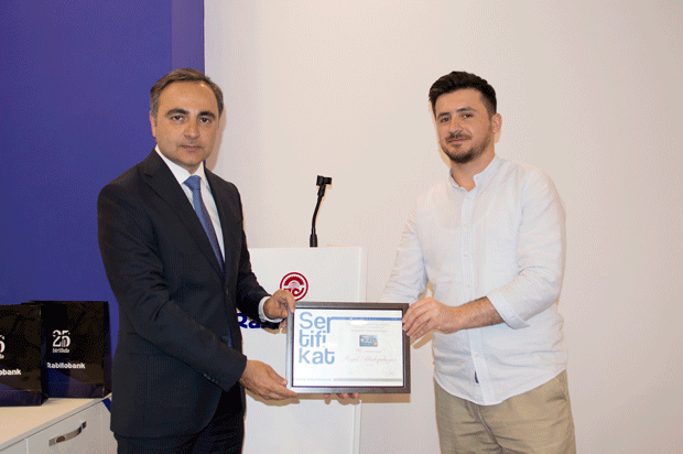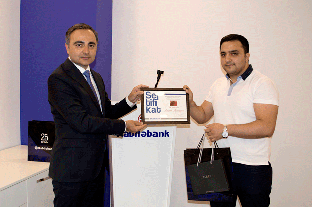 "Rabitəbank"ın Baş ofisində baş tutmuş mükafatlandırılma mərasimi zamanı Bankın İdarə Heyətinin sədri Elçin Qədimov qaliblərə bu müsabiqəyə yaradıcı yanaşdıqlarına və fəal iştirak etdiklərinə görə dərin təşəkkürünü bildirmiş, onlara 1000 AZN balanslı MasterCard Black Edition pul mükafatını və digər dəyərli hədiyyələri təqdim etmişdir.