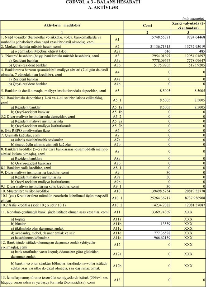 Aktivlərin azalmasının səbəbi 6 ay ərzində Mərkəzi Bankda müxbir hesabdakı vəsitin 31 milyon 136 min manatdan 3 milyon 90 min manata, "Nostro" hesabların isə 12 milyon 954 min manatdan 811 min manata geriləməsidir.
