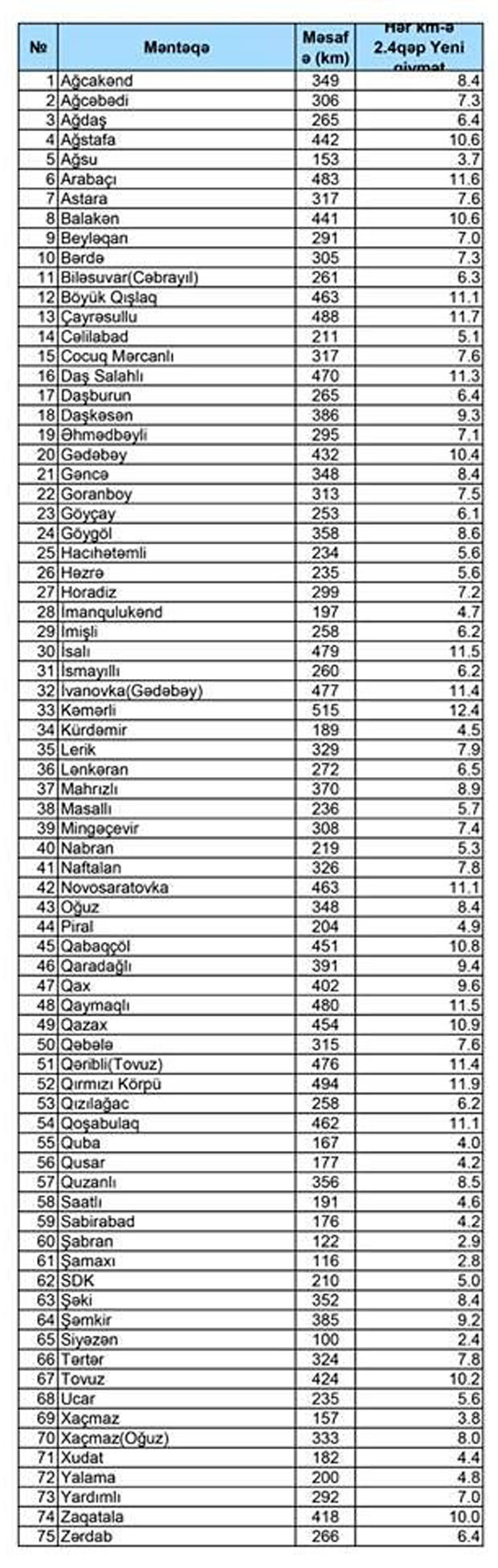 Şəhərlərarası müntəzəm avtobus marşrutlarının yeni tarifləri:
