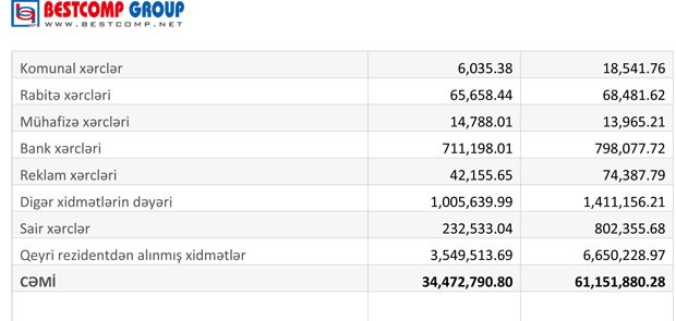 Ötən il Şirkətin bank komisyon xərcləri (kredit üçün)də artaraq 675 min manatdan 1 milyon 443 min manata yüksəlib. Şirkətin xərcləri gəlirlərindən daha çox artıb.