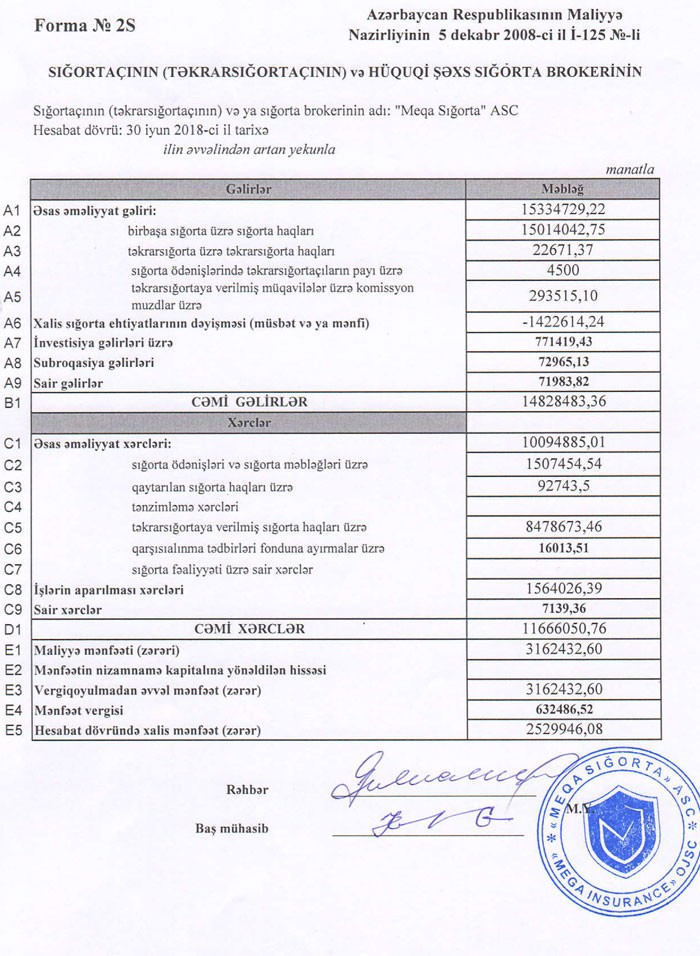 “Meqa Sığorta”nın xərcləri artdığından əməliyyat mənfəəti ötən ilin birinci yarısındakı 3 milyon 188 min manatdan bu ilin eyni dövründə 3 milyon162 min manata düşüb.