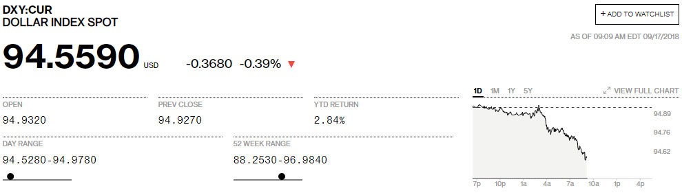 ABŞ valyutasının 6 mühüm valyuta qarşısındakı dəyərini göstərən Dollar indeksi isə 0.45% düşərək 94.54-ə geriləyib. Son bir ayda indeks 1.43% düşüb.