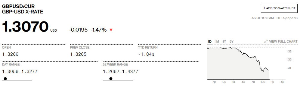 Funt-sterlinq, Böyük Britaniyanın Baş naziri Tereza Meyin (Theresa May) Böyük Britaniyanın Avropa İttifaqından (Aİ) çıxmasına dair açıqlamalarından sonra ucuzlaşıb.