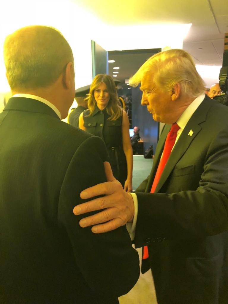 Türkiyə Prezidenti Rəcəb Tayyib Ərdoğan Birləşmiş Millətlər Təşkilatının Baş Məclisində çıxışından əvvəl kolidorda ABŞ Prezidenti Donald Tramp ilə təsadüfən rastlaşıb və ayaqüstü qısa söhbət ediblər.