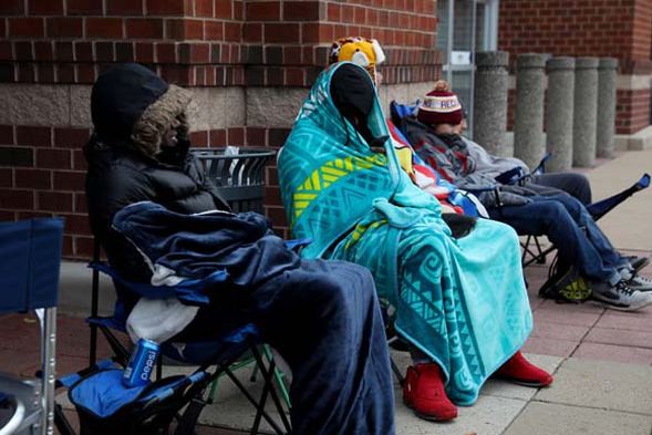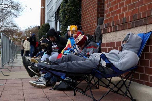 Nyu-Cersi və Nyu-Yorkdakı mağazaların qarşısında uzun növbələr yaradan minlərlə insan, dondurucu soyuqda saatlarla satışların başlamasını gözləyib.