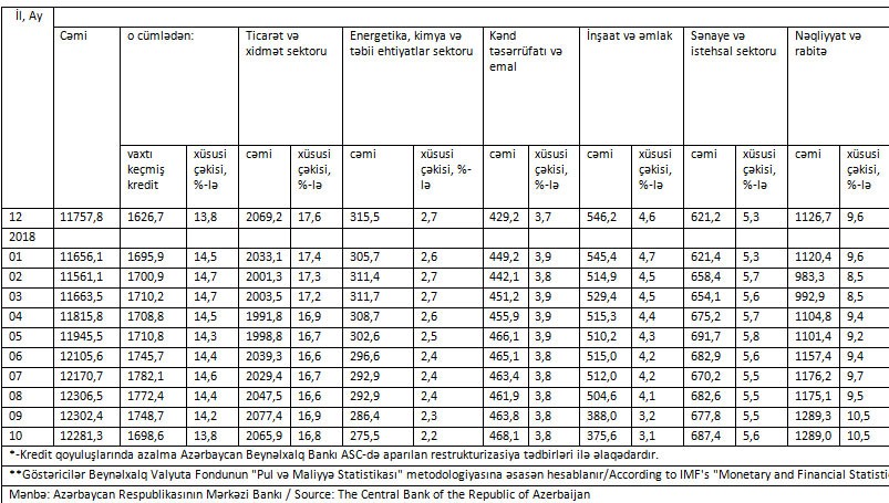 2018 başa çatır, kreditlərdə ciddi canlanma müşahidə olunmur