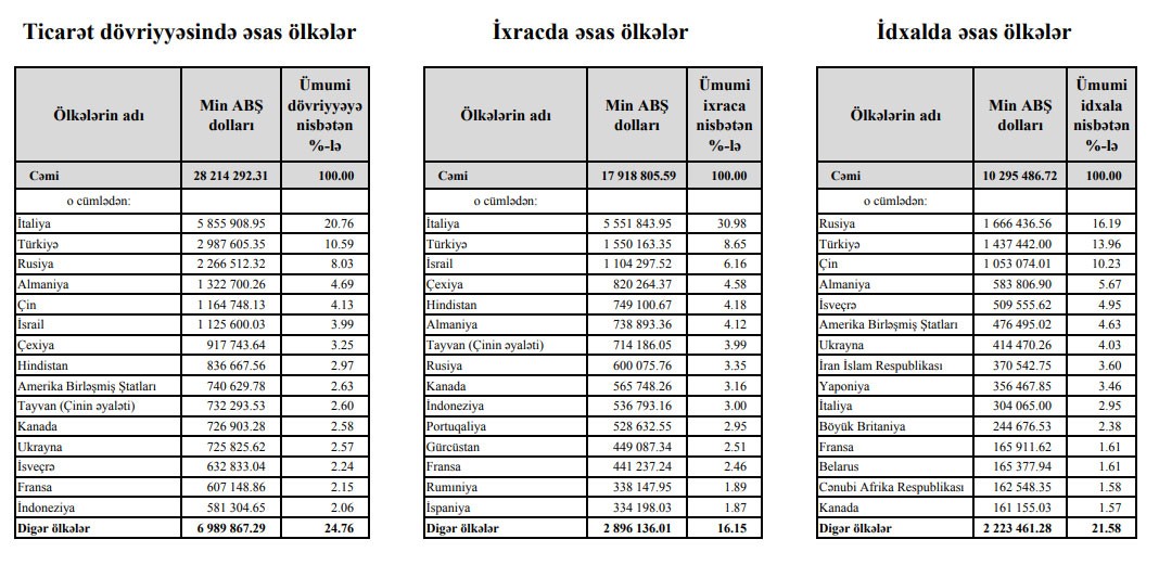 Azərbaycan Rusiyaya ixrac etdiyindən daha çox məhsul idxal edib.