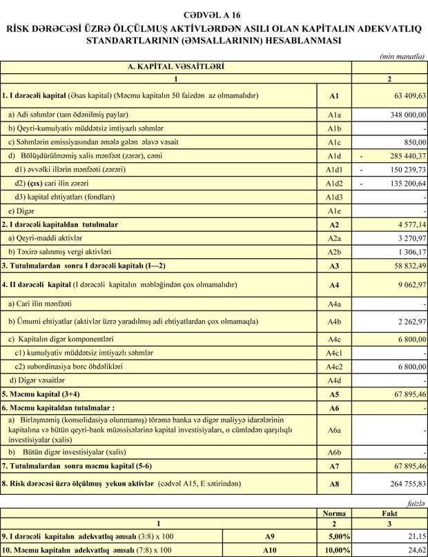 İllik müqayisədə Bankda depozitlər cüzi azalaraq 229 milyon 225 min manatdan 228 milyon 666 min manata düşüb.