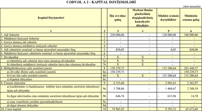 Bankın faiz gəlirləri illik müqayisədə 66 milyon 682 min manatdan 68 milyon 137 min manata, qeyri-faiz gəlirləri isə 3 milyon 66 min manatdan 7 milyon 689 min manata qalxıb.