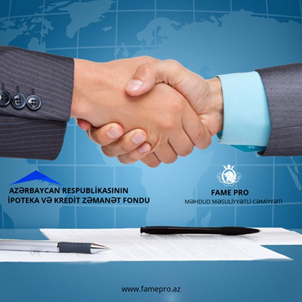 Bu gün Azərbaycan Respublikasının İpoteka və Kredit Zəmanət Fondu ilə "FAME PRO" MMC arasında əməkdaşlıq müqviləsi bağlanmışdır.
